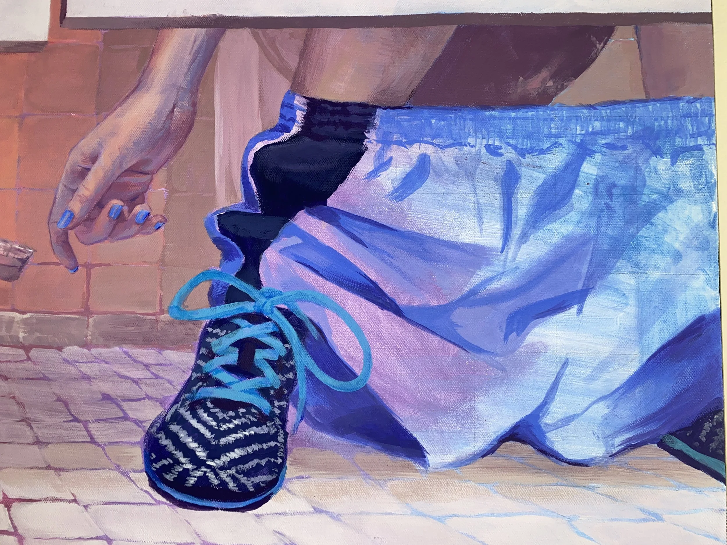 In this piece, I wanted to make something that reflects my experience of menstruation. Even in its most gut-wrenching moments, I’ve felt supported by the quiet camaraderie of someone else sharing their products, or giving me the physical or emotional support I needed. It’s those gestures of care that mean a lot when your body feels like it’s fighting you, and ‘By Your Side’ represents that gentle love we share.